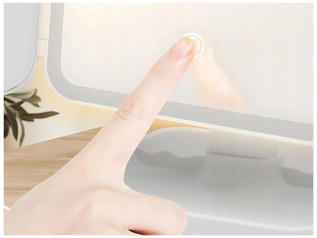 Dotykové tlačítko umožňuje zvolit jednu ze tří barevných teplot: studenou, teplou a neutrální, takže můžete dokonale přizpůsobit svůj make-up dennímu i večernímu světlu. Vestavěné diody LED poskytují rovnoměrné a intenzivní osvětlení bez stínů.