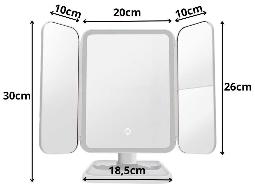 Kosmetické zrcátko s LED osvětlením je praktickým řešením pro každou osobu, která dbá na dokonalé nalíčení a úpravu. Trojitý design se sklopnými křídly poskytuje široký pozorovací úhel, zatímco nastavitelné osvětlení ve 3 barvách světla umožňuje přizpůsobit jas prostředí. Díky dobíjecímu napájení a nabíjení přes USB-C ji můžete používat kdekoli - doma, na cestách nebo na dovolené.