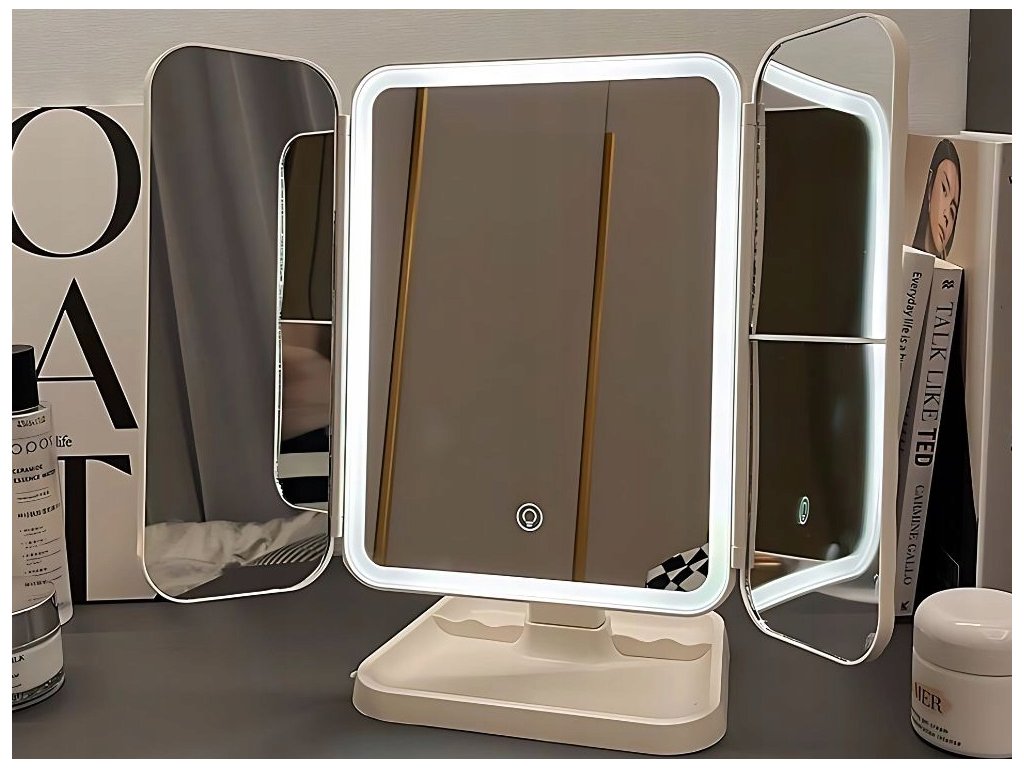 KOSMETICKÉ ZRCADLO OSVĚTLENÉ LED SKLÁDACÍ MAKE-UP ZRCADLO USB 3 BARVY