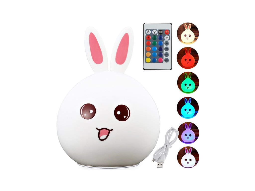 DĚTSKÉ LED NOČNÍ SVĚTLO SILIKONOVÉ DÁLKOVÉ OVLÁDÁNÍ RGB USB BAREVNÝ PLYŠOVÝ KRÁLÍČEK