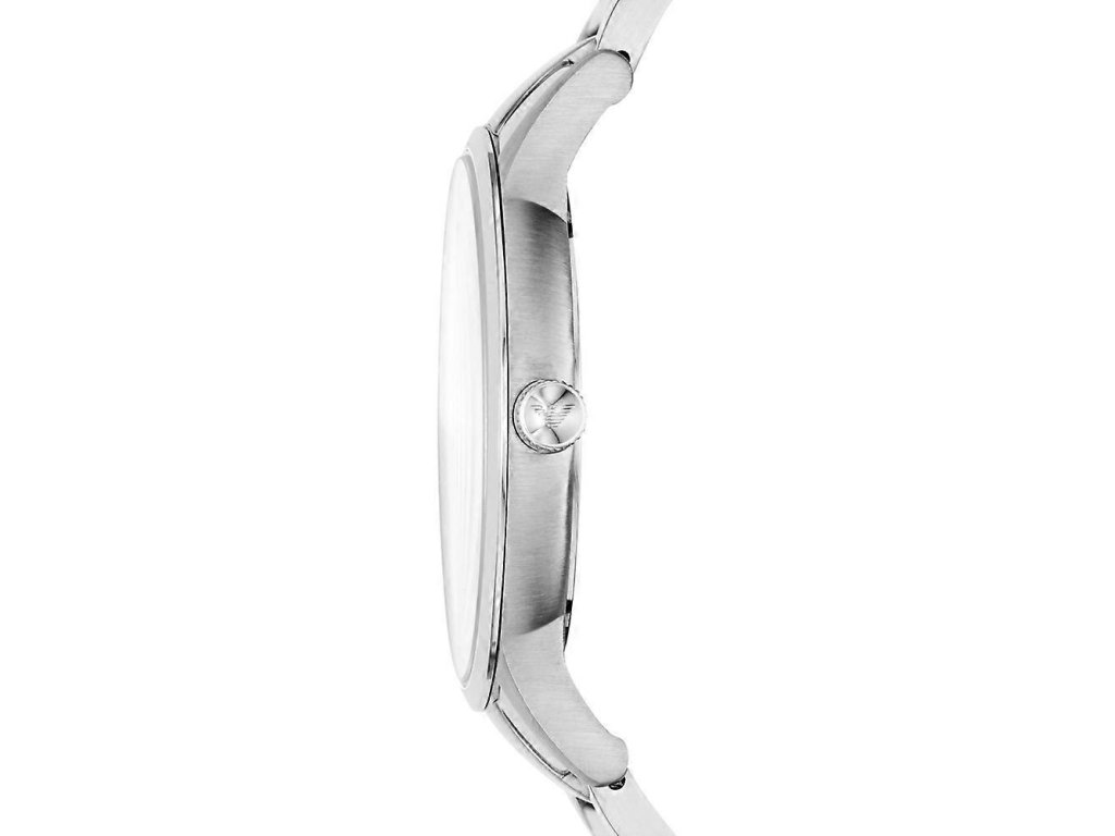 Pánské hodinky Emporio Armani Renato AR11179 jsou klasické pánské hodinky, které se hodí jak k elegantnímu oblečení, tak k běžnému nošení. Obal a náramek byly vyrobeny z ušlechtilé oceli, což zaručuje jejich dlouhodobou odolnost proti poškození. Na černém ciferníku, chráněném minerálním sklíčkem, najdeme datumovku označující den v měsíci.