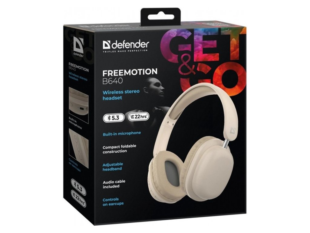 Bezdrátové sluchátka FreeMotion B640. Spolehlivá a pohodlná sluchátka s kovovou základnou a měkkými náušníky. Dlouhá výdrž baterie, audio kabel je součástí balení.