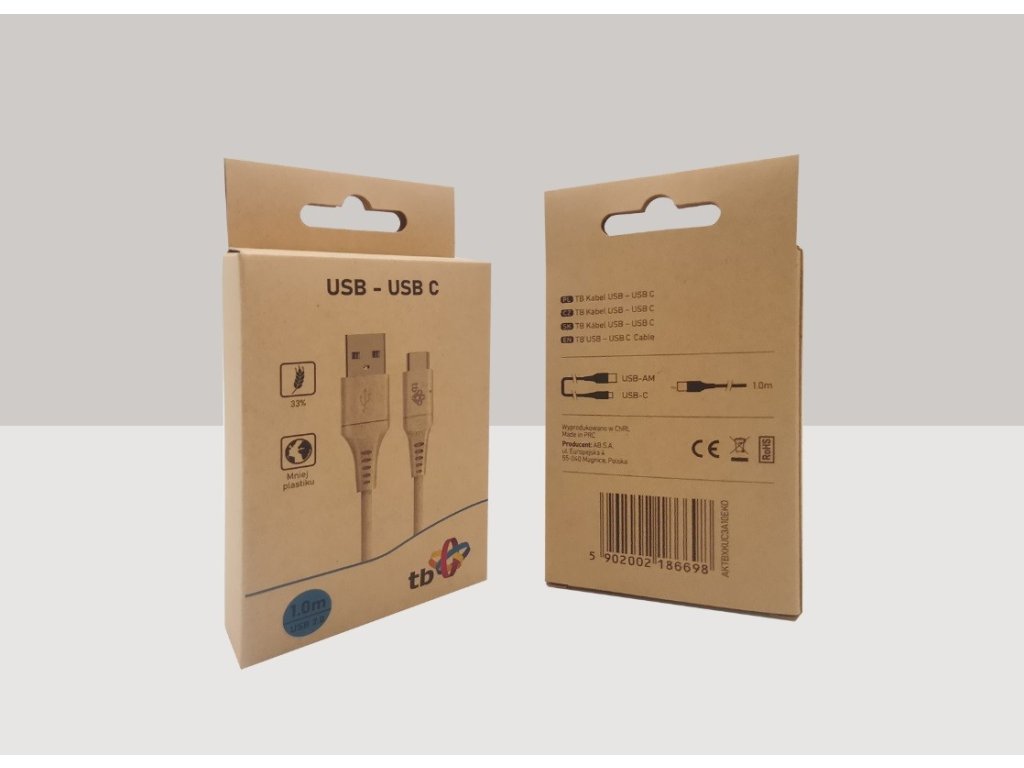 Ekologický USB na USB C kabel: Kabel je vyroben z 33 procent organické hmoty ze slámy, která byla spojena s TPE. Díky tomuto složení je kabel dostatečně pružný a odolný, a zároveň snižujeme spotřebu plastu.